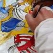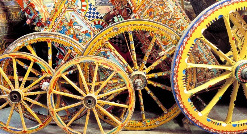 Домакинските уреди стават платна за пъстри тринакрийски знаци, италиански лимони и плодове, сцени от сицилианския бит и фолклор.