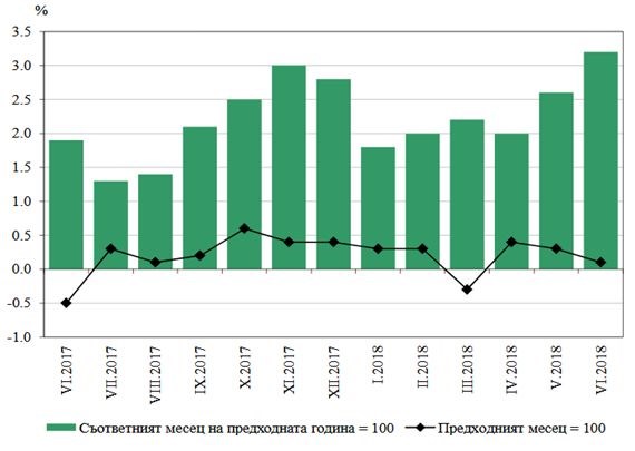 Хармонизираната инфлация (индексът HICP според общите европейски стандарти) се повиши през юни с 0,5% на месечна база, докато на годишна база хармонизираната потребителска инфлация в нашата страна нарасна с цели 3,0% след повишение с 2,3% през месец май.
