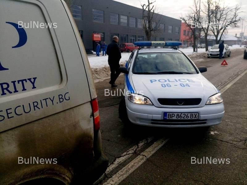 Явно инкасо колата е пълна с пари, тъй като незабавно на мястото пристигнаха два полицейски екипа. Едната патрулка спря точно до вратата на автомобила и веднага пое охраната на товара.
