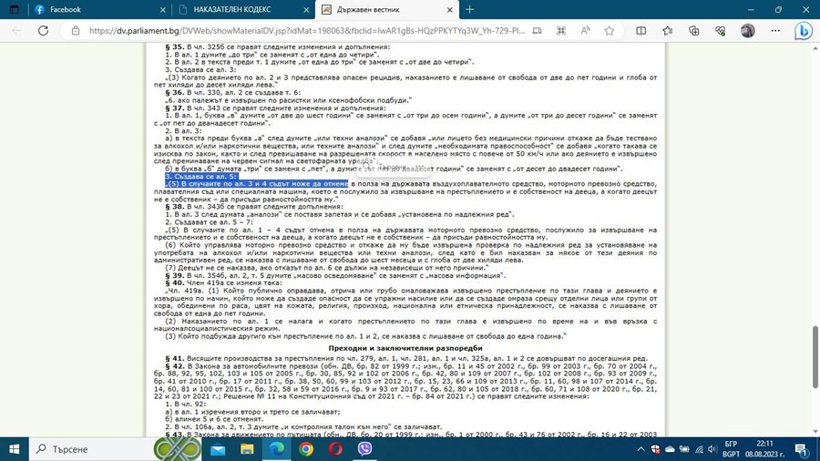 От една страна ще се отнемат МПС собственост на шофьорите, които са употребили алкохол или наркотици по време на шофиране, а от друга страна, ако същия този шофьор убие някого на пътя само съда може евентуално да отнеме МПС в полза на държавата. В този случай е налице не само почва за законодателен хаос, но и правен абсурд, пишат от Института за пътна безопасност в позиция до медиите.