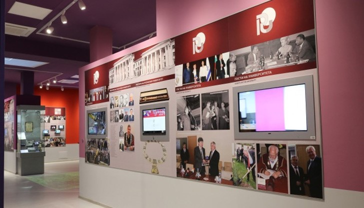 На 300 кв.м. в Ректората на Русенския университет е разположена експозиция, която разказва историята на висшето училище от неговото създаване.