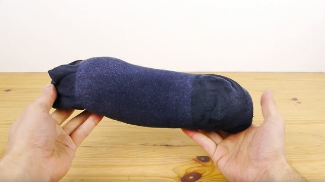 Напълнете един памучен чорап с гранули за котешка тоалетна и го завържете на възел в края.