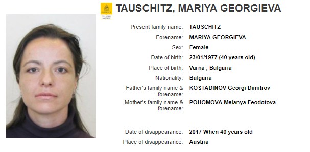 По лични данни, предоставени от Интерпол, издирваната е с имена Мария Георгиева Таушиц, предаде Нова Варна.