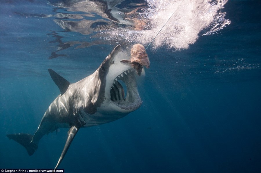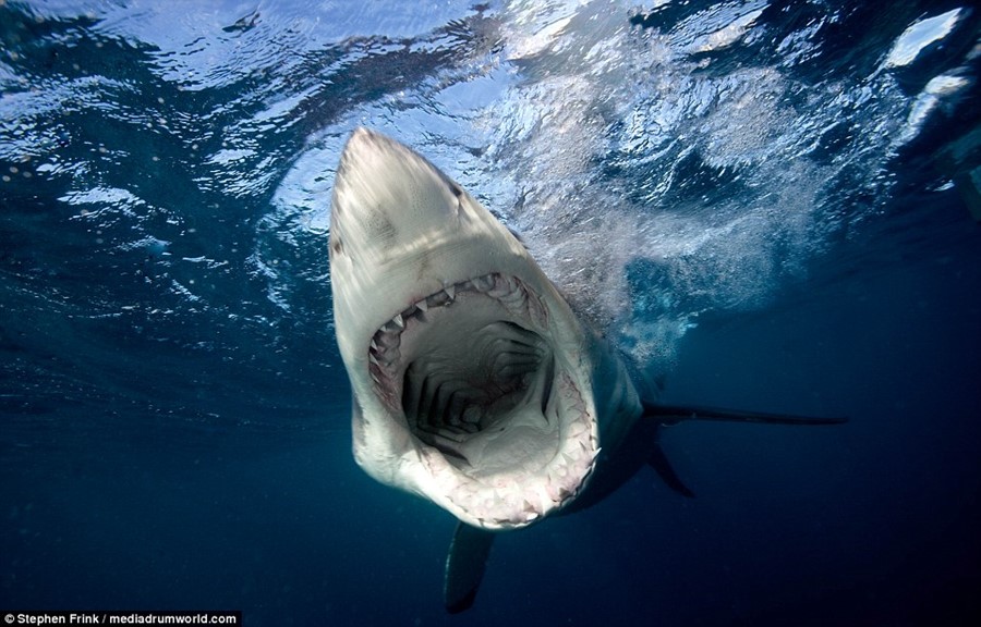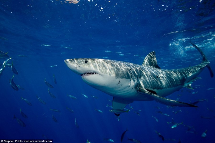 Стивън Фринк е 67-годишен фотограф от Флорида и издател на списание за водолази. Той изследва в дълбочина океаните край Южна Австралия , Южна Африка и Гвадалупе (Мексико). Казва, че е срещнал огромен екземпляр и вярва, че може да бъде сравнен с най-голямата бяла акула в света- дълга 6 метра, наречена "Дълбоко синьо", открита във водите на Мексико.