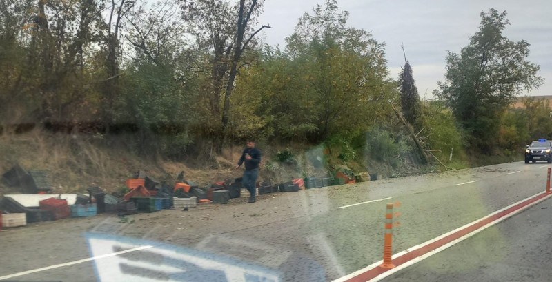 При произшествието водачът не е пострадал, но товарът му от щайги се е разпилял по платното и движението в посока Бяла бе спряно.