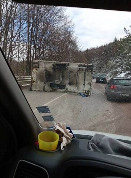 Според информация от шофьори в социалните мрежи, причината за затрудненото движение е обърнат контейнер от камион на качване към прохода "Петрохан" откъм София. Вследствие на инцидента в района се е образувало значително задръстване, като тапата продължава вече 30 минути.