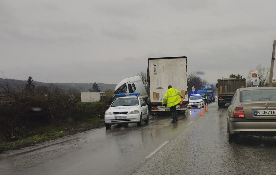 Инцидент с ТИР затруднява трафика на пътя Велико Търново - Русе
