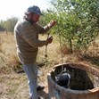 "Вижте само каква кофа си имам", казва той развълнувано, докато ни показва как се снабдява с живителната течност.