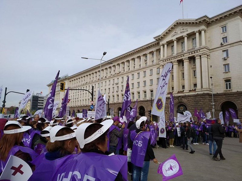 "Пари и ред веднага или разпад! Искаме достоен труд днес, утре ще е късно", настоя пред протестиращите Пламен Димитров. Този път синдикатите застанаха зад медицинските специалисти, след като през пролетта на предишния им протест се разграничиха от тях. По тази причина медицинските сестри неведнъж досега се отричаха от профсъюзите.
