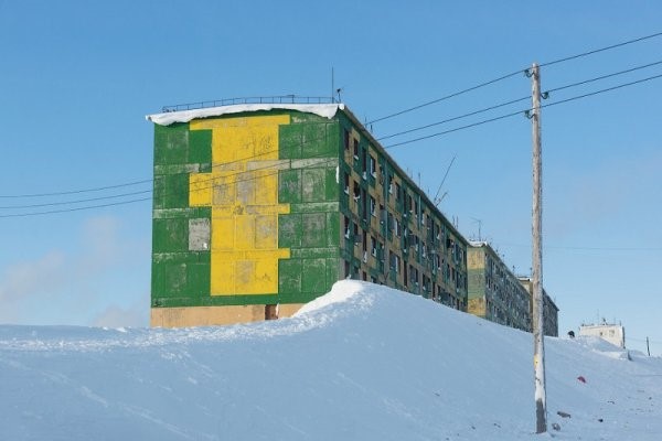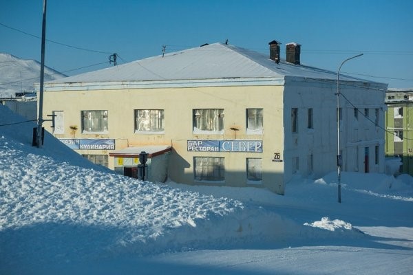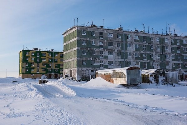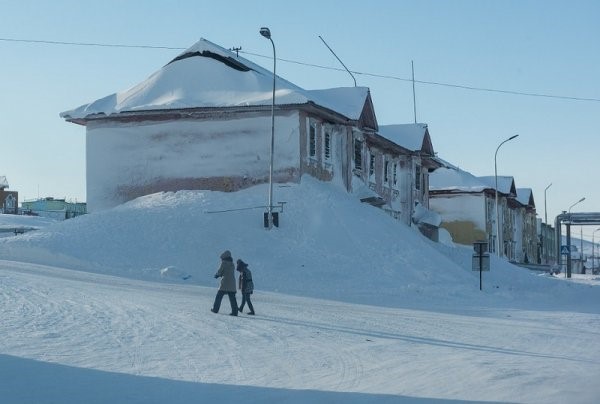 Снегът бавно, но сигурно завладява всичко. Жилищните сгради са в окаяно състояние заради суровото време, което се усложнява още повече и от факта, че градът се намира на брега на леденото море Лаптеви.