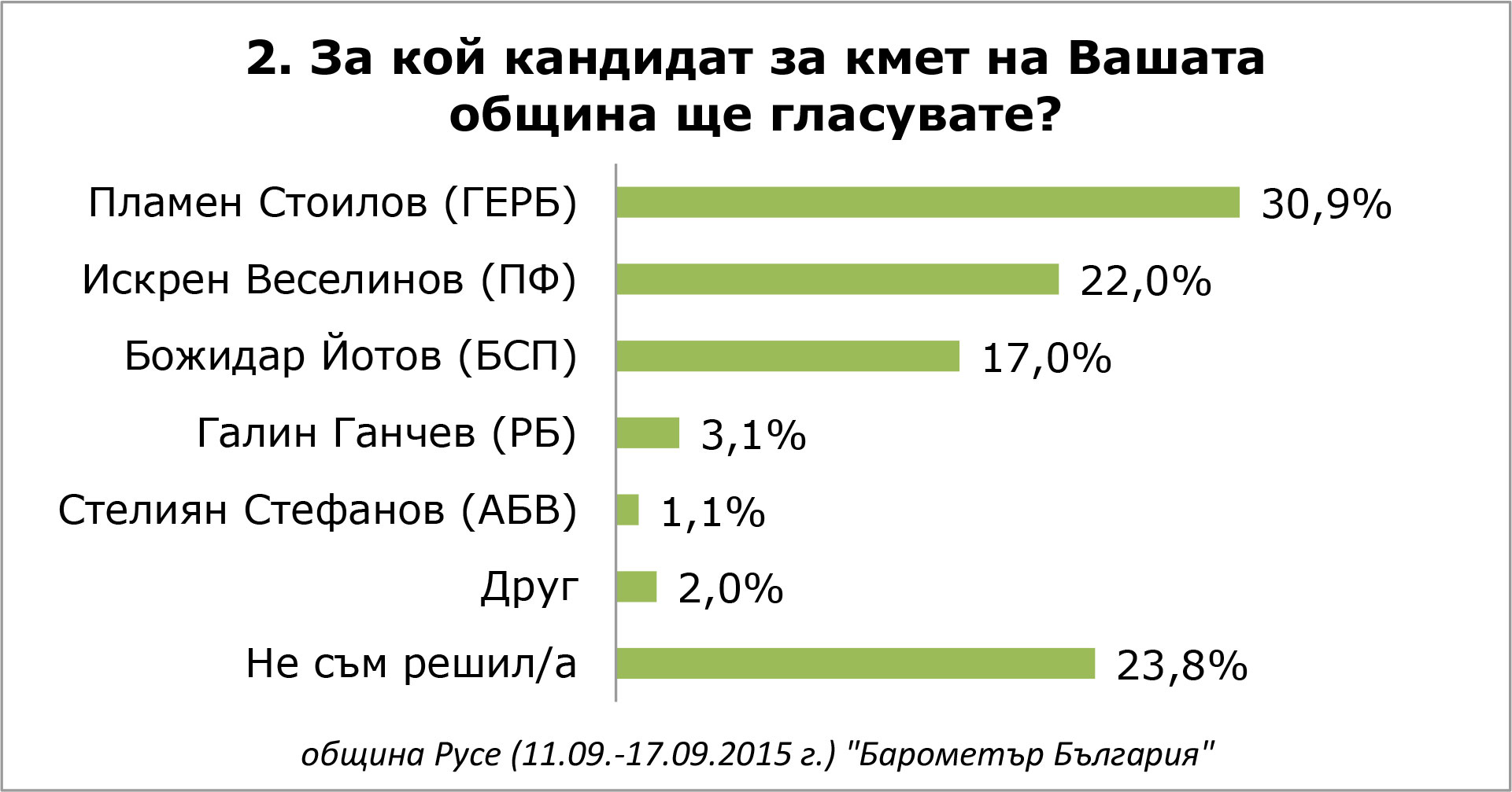 Проучване на електоралните нагласи за предстоящите на 25 октомври 2015 т. избори за кметове и общински съветници в община Русе.