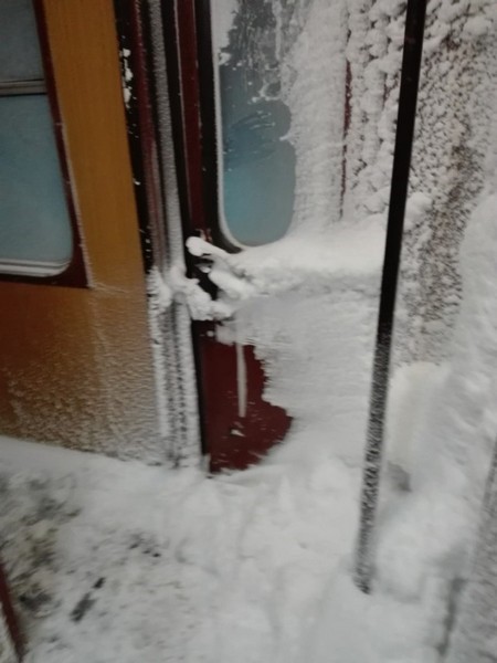 "Да се радваш на снега докато пътуваш" - това пише потребител на платформата "Аз, репортерът" на bTV, който е изпратил снимки на снежна преспа във влака.