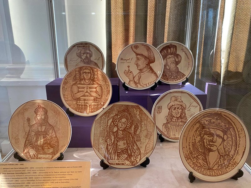 Изложбата „Истории от порцелан. Образи от Великото херцогство Люксембург“ е подредена в зала „Княз Александър I“ на Историческия музей. Новата експозиция представя част от колекция сувенирни порцеланови чинии, произведени от компанията Vileroy & Boch (V&B) във фабриката й в Люксембург.