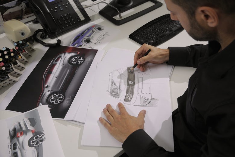 Това е и причината при скицирането на версията на колата, която е най-близко до серийния модел, да се откаже от една своя любима форма на прозорчето зад задната врата. "Не беше достатъчно дъстърско", коментира с усмивка Клисаров на среща с български журналисти в петък.