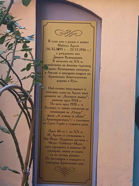 Вчера в Арменския дом в Русе беше открита изложбата "Майкъл Арлен и арменската история", посветена на 130-та годишнина от рождението на световноизвестния писател, роден в града. Събитието се проведе по повод юбилея на литературната икона, чието име е свързано с Русе и световната слава на романа "Зелената шапка".