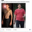 Втората снимка показва Милър с 20-тина килограма телесен излишък, бирено коремче, странна прическа и овални форми, които дори широката му червена тениска не може да прикрие.