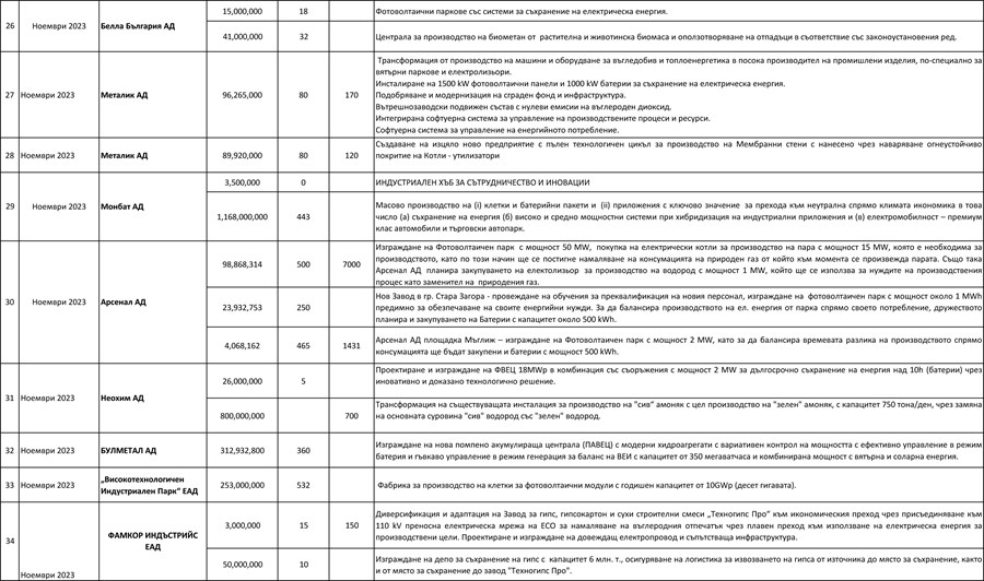 ТРАШ ЕНЕРДЖИ ЕООД – 210 000 000лв за завод за произвеждане и съхранение на електроенергия и зелен водород. Но фирмата не отговаря на критериите за голямо предприятие, дори в техния годишен финансов отчет е записано, че са средно предприятие и по този начин не трябва да бъдат в този списък.