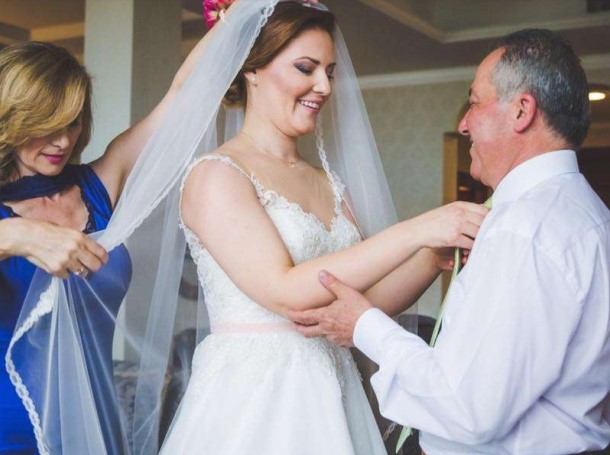 Снимките са дело на фотографа Георги Стратиев. Роклята на булката е ушита от София Борисова от модна къща "Романтика".
