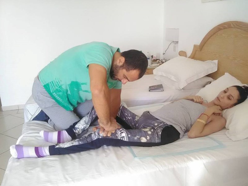 До момента с Ива се занимаваше специалист терапевт Памбос, на който Ива е много благодарна, защото до днес Ива не можеше да си разгъва краката. Днес обаче терапевта е успял да разпъне и двата долни крайника почти до пълно изправени.