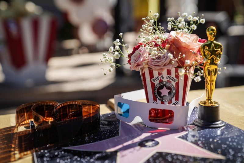 Тя дойде някак естествено предвид актьорската професия на Ивайло, наред с мястото, на което избрахме да сключим брак, и страстта ни към киното и музиката. В украсата на събитието имаше можество кино елементи - малки "Оскар"-и за гостите, стара филмова лента в декорацията и букета, кутийки за пуканки, 3D очила и филмови клапи. Музиката, която звуча на тържеството, бе избрана от нас, като песните бяха саундтраци на любими наши продукции. Като цяло бе церемония за двама видни киномани.