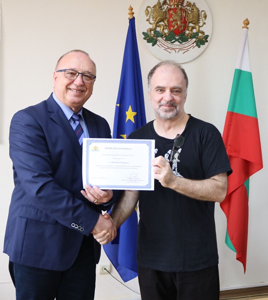 На церемонията по награждаване присъства и бившият министър на културата Найден Тодоров, който също получи признание от заместник областния управител Георги Георгиев под формата на почетна грамота за приноса си към музикалното изкуство.