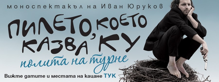 Един от най-харесваните и популярни наши актьори от театралната сцена и телевизионният екран – Иван Юруков ще представи великолепния си моноспектакъл - “ПИЛЕТО, КОЕТО КАЗВА КУ” в есенно турне из градовете на България. Театралният полет на спектакъла ще стартира от София - на 26 октомври в Нов театър НДК.