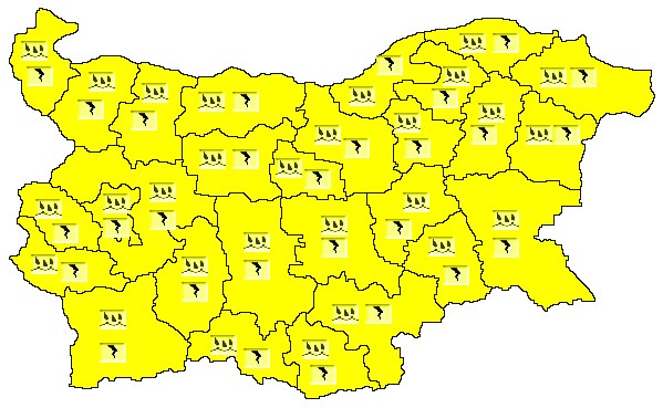 Издадоха жълт код за дъжд и бури за цяла България в понеделник