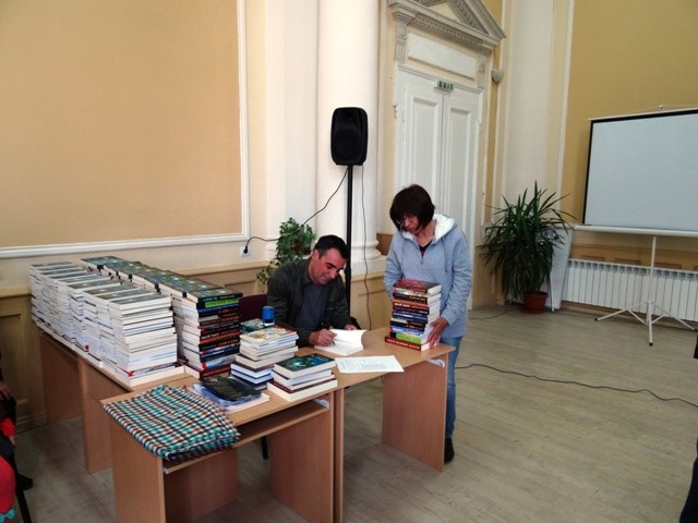 Сред дарените книги има издания на изявени български творци, детска литература, както и издания на най-младото поколение български автори, сред които е и романът „Екс орбита” на Васил Георгиев, който лично даде автографи и надписа книгите си за всяка библиотека.