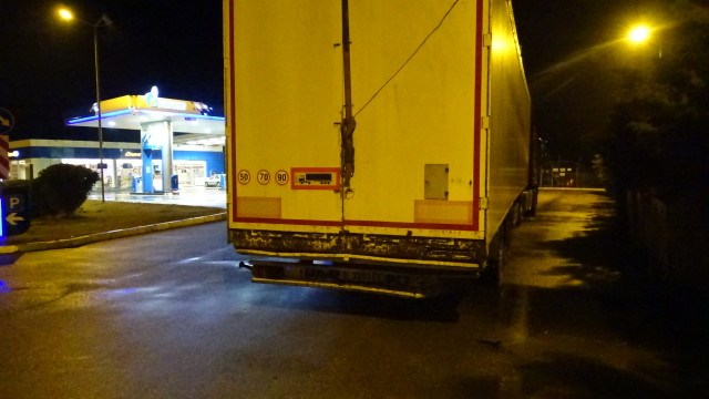 Товарен автомобил с ремарке навлиза към бензиностанцията, когато отзад е ударен от лек автомобил „Опел-Корса“. Докато водачът изтегли ТИР-а, за да не пречи на движението, тъй като отляво има спрели други товарни автомобили, шофьорът и спътникът на лекия автомобил слезли, свалили регистрационните номера, заключили го и избягали.