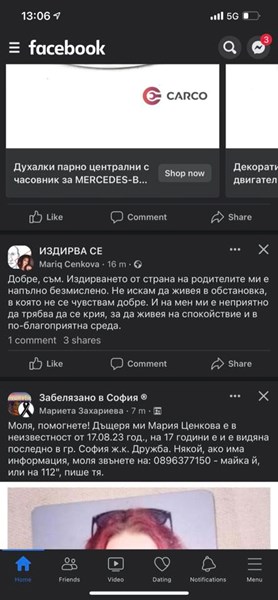 Майка издирва 17-годишната си дъщеря с пост в социалните мрежи.