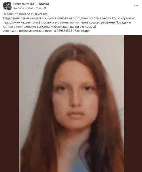 Близките на 17-годишно момиче от Варна го издирват. В социалните мрежи те разпространиха апел за помощ, а сигнал е подаден и в полицията.