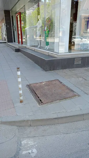 Публикуваните кадри показват тежък метален капак, чийто край е буквално изяден от ръждата. Според преминаващите това създава предпоставка за пропадане и инциденти.