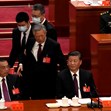 79-годишният бивш генерален секретар на Китайската комунистическа партия (ККП) беше изпроводен от двама разпоредители малко след като представители на чуждестранни медии бяха допуснати да влязат в заседателната зала на парламента в последния ден от продължилото една седмица събитие.
