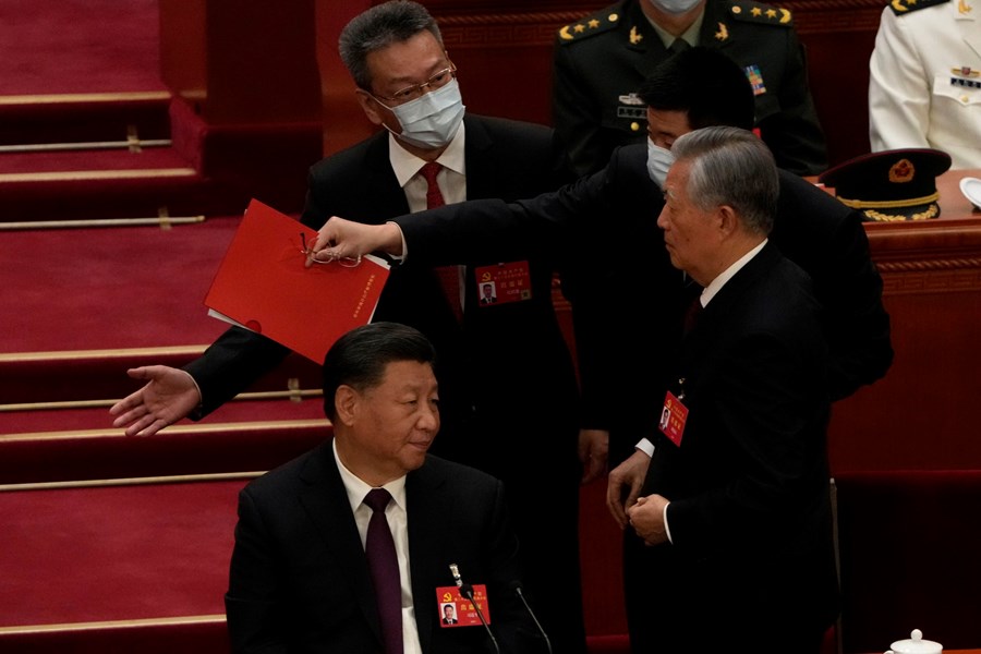 Предишният китайски президент Ху Цзинтао беше отстранен от подиума, където седеше до настоящия държавен глава Си Цзинпин на церемонията по закриването на 20-ия конгрес на управляваща комунистическа партия днес, предадоха ДПА, Франс прес и БТА.