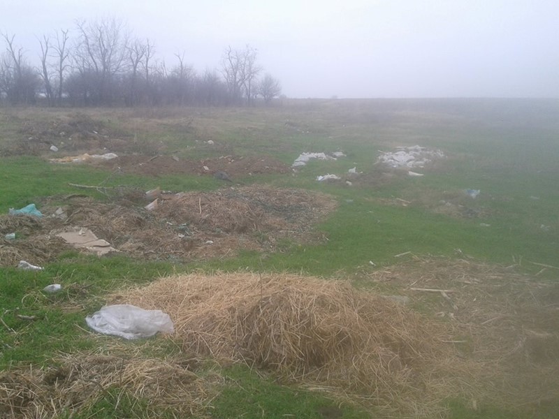 На кадрите се вижда поляна, затрупана с боклуци, а също и изхвърлени вътрешности от едър добитък, просто "ей така".
