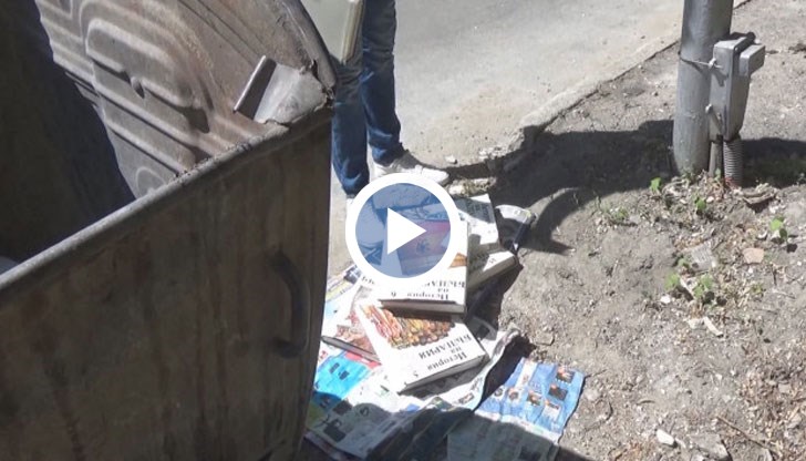 На път за дома си Георги Марков забелязва купчина книги до контейнера за боклук.