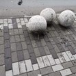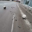 Изтръгнатите каменни топки са поставени на платното така, че да не може да се минава.