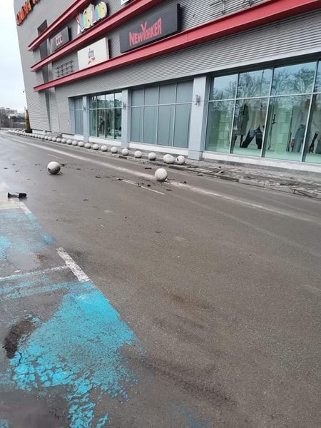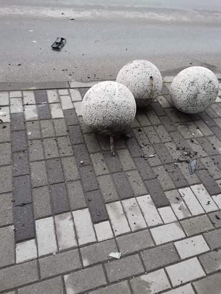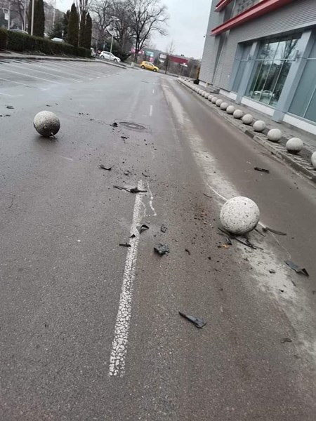 Изкъртени ограничителни елементи блокираха улицата пред Мол Русе