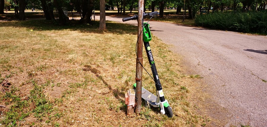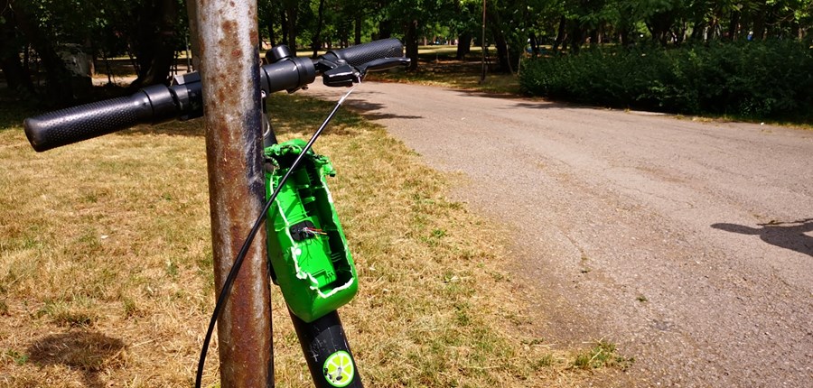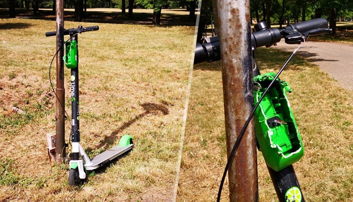 Една от тротинетките е зарязана изпочупена в Парка на младежа, а на много други места са захвърлени безразборно. Възможно е тротинетка да бъде счупена при инцидент, но в конкретния случай, по-скоро става дума за вандалски акт.