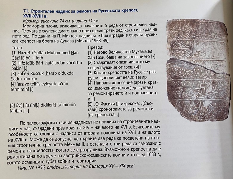 Излезе от печат каталог на каменните артефакти, разположени в Лапидариума на Русенския музей. Новото издание носи името „Каменна летописна книга“, тъй като представя разчетените вече надписи от колекцията, показани в откритото пространство зад музея, съобщават от РИМ - Русе. Книгата съдържа информация за 101 броя епиграфски паметници от времето на Средновековието, Античността, Османският период и периодът след Освобождението. Част от тях са открити и описани още в началото на 19 в., но по-активно този процес се разраства с теренните проучвания на Карел Шкорпил и последващите изследвания на поредица от изтъкнати специалисти и епиграфи от началото на 20 в. Голям брой от каменните артефакти са придобити след археологически разкопки на Сексагинта Приста, Тримамиум, Ятрус, има и такива, които са намерени случайно при изкопни и строителни работи или са плод на събирателската дейност на Русенското археологическо дружество.