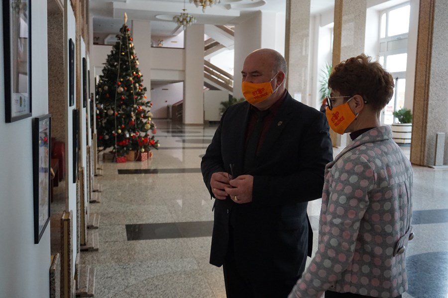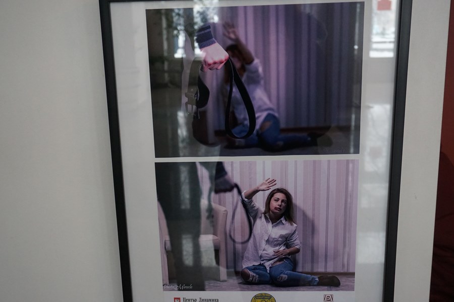 Фотографии в подкрепа на жените, жертви на насилие, са изложени във фоайето на Доходното здание.
