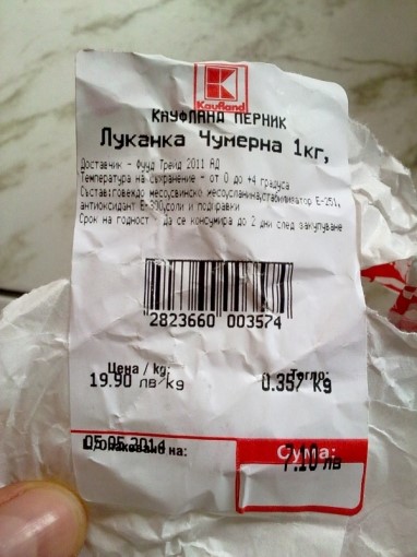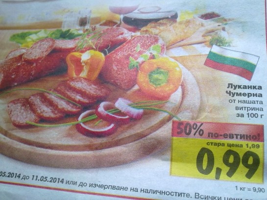 "Днес в Кауфланд в Перник има на промоция луканка "Чумерна", намалена на почти половина от 1.99 за сто грама на 0.99 за сто грама.
