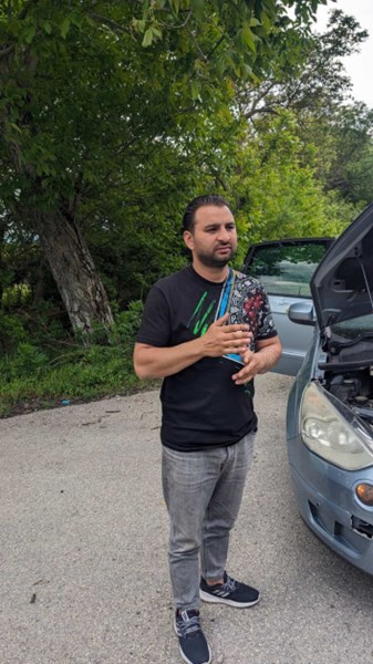 „ВНИМАНИЕ! Измамник на пътя. Въпросният индивид от снимките спира колите за помощ. Казва, че са им откраднали чантата с документите и парите, и иска пари, за да зареди гориво и да се прибере в родната Румъния, в замяна дава фалшиви бронзови бижута с печати, който клъвне. Вчера беше преди град Бяла днес се е преместил между Долни Дъбник и Горни Дъбник,“ пише Стилян Куташки, който прилага и снимки на измамника и автомобила му.