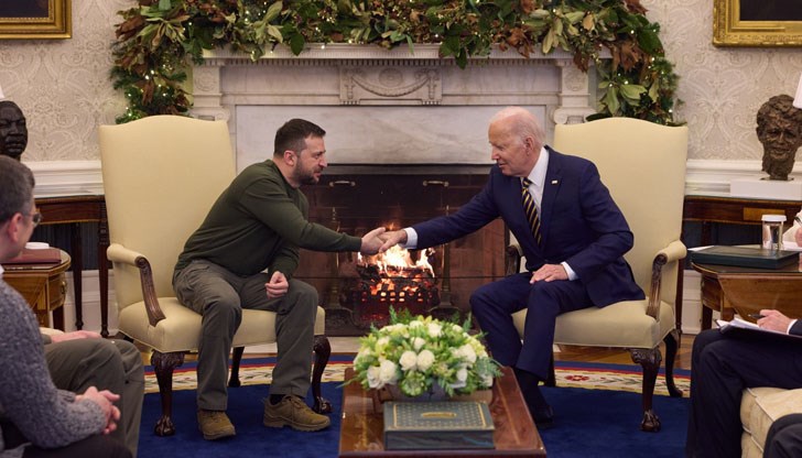 "Радвам се, че успяхте да направите това пътуване и да сте тук", каза вчера Байдън на Зеленски. "За мен е чест да съм до вас в единна защита срещу бруталната, бруталната война, водена от (руския президент Владимир) Путин", добави той.