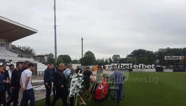 Опечалените поднесоха венци и цветя над тленните останки на футболиста на стадион Локомотив на Лаута. Пловдивчани близо час поднасяха съболезнования на близките на Садъков, пише Traffic News.