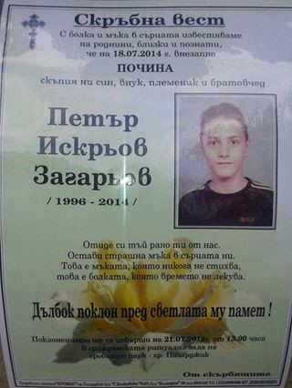 Десетки роднини, близки, съученици, приятели и учители изпратиха в последния му път 18-годишния Петър Загарьов на гробищата в Пазарджик.