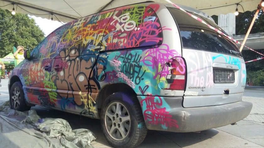Два стари автомобила бяха преобразени от графити художници в центъра на Варна. Инициативата е част от програмата на младежкия фестивал "Фън Сити".
