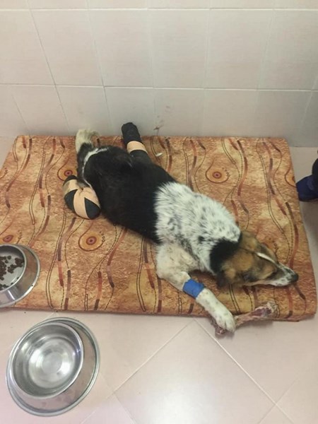 В момента кучето се лекува. Днес е малко по-спокойно, но трябва да се овладее тежката инфекция. След това ще й бъдат направени операции и ще стане ясно дали ще могат да бъдат направени протези. Лечението на ден излиза около 70 лв., но може да падне и на 50.