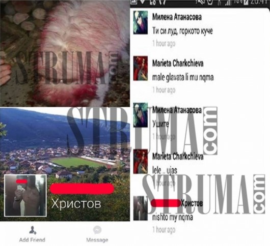 След направена му жестока забележка, той изтри снимките, но те вече бяха споделени от стотици потребители. Гледката ни шокира. Още едно доказателство за масовото полудяване на младежите и безграничната им агресия. За съжаление, явно уплашен, благоевградчинът изтри целия си профил, знаем името му, имаме снимката му и ще го подадем на полицията.
