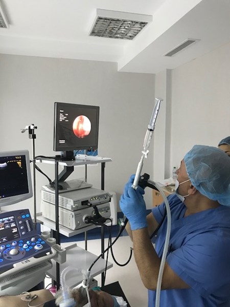 Конкретният повод за използването на апарата – EBUS-TBNA, е наличието на ПЕТ/СТ данни за метаболитно активни лезии в субкариналния прозорец, обясни д-р Христо Йорданов, лекар бронхолог към отделението по гръдна хирургия, който извърши сложната манипулация с цел доказване на метастази в лифните възли на белите дробове.